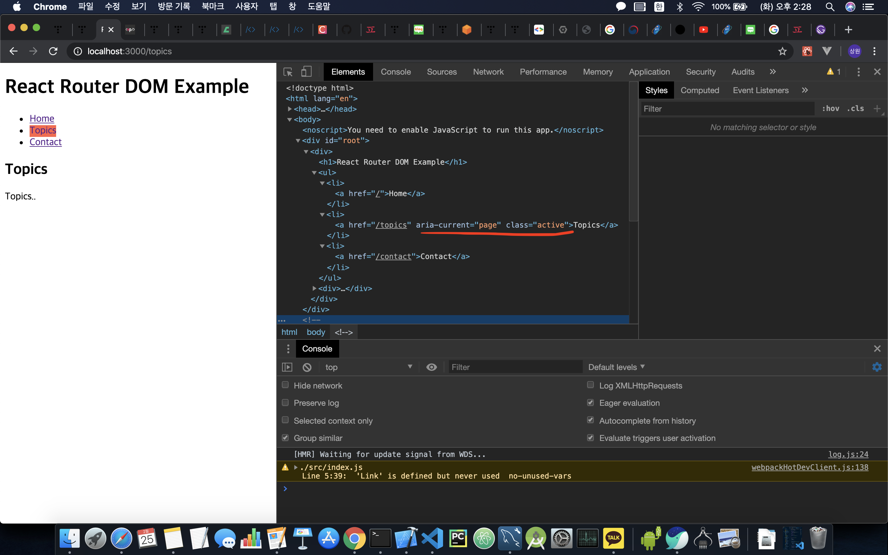- 하나의 예를 들어보면 "/topics"를 탐색하면 "/"와 "/topics" 둘 다 탐색되기 때문이다.