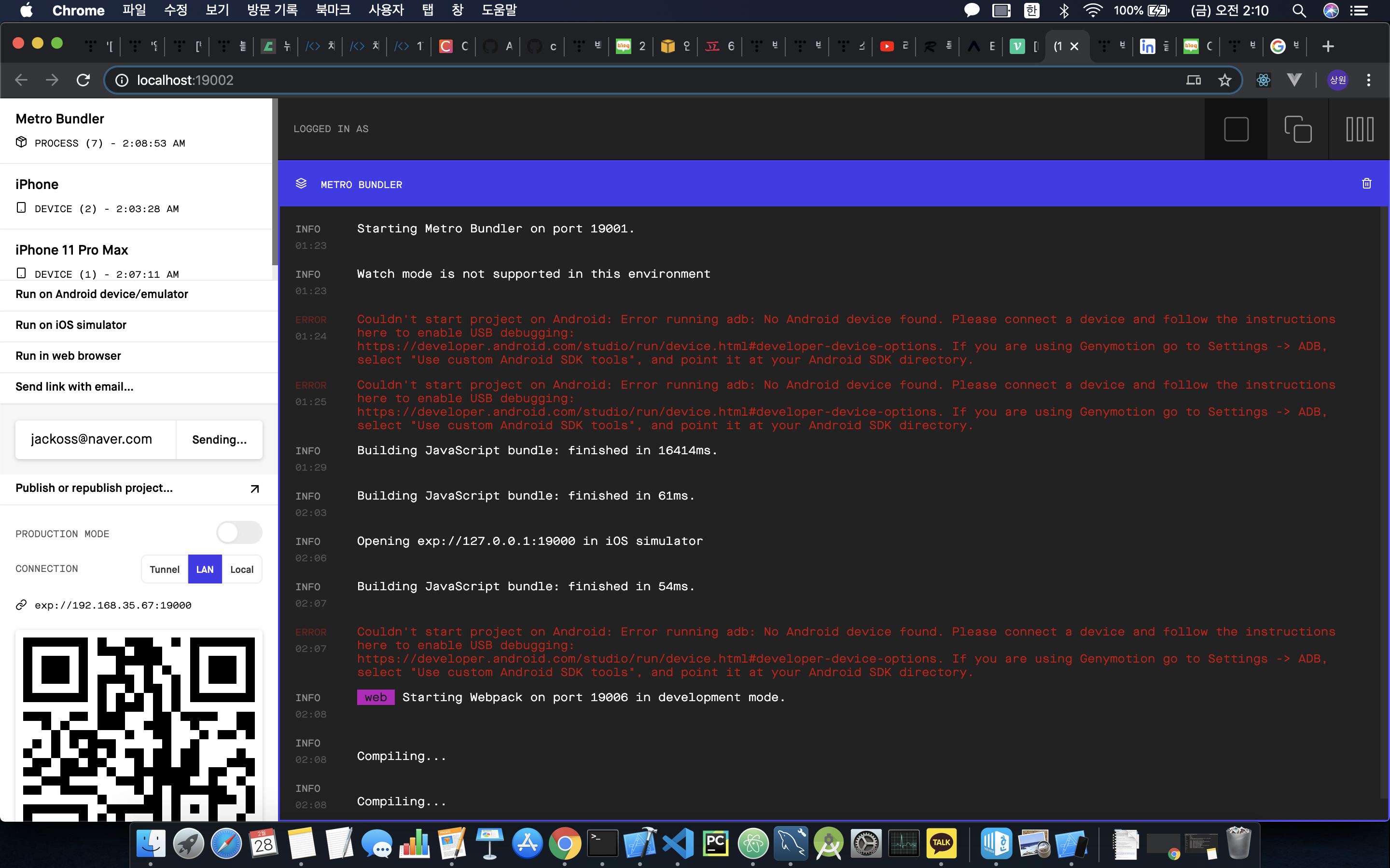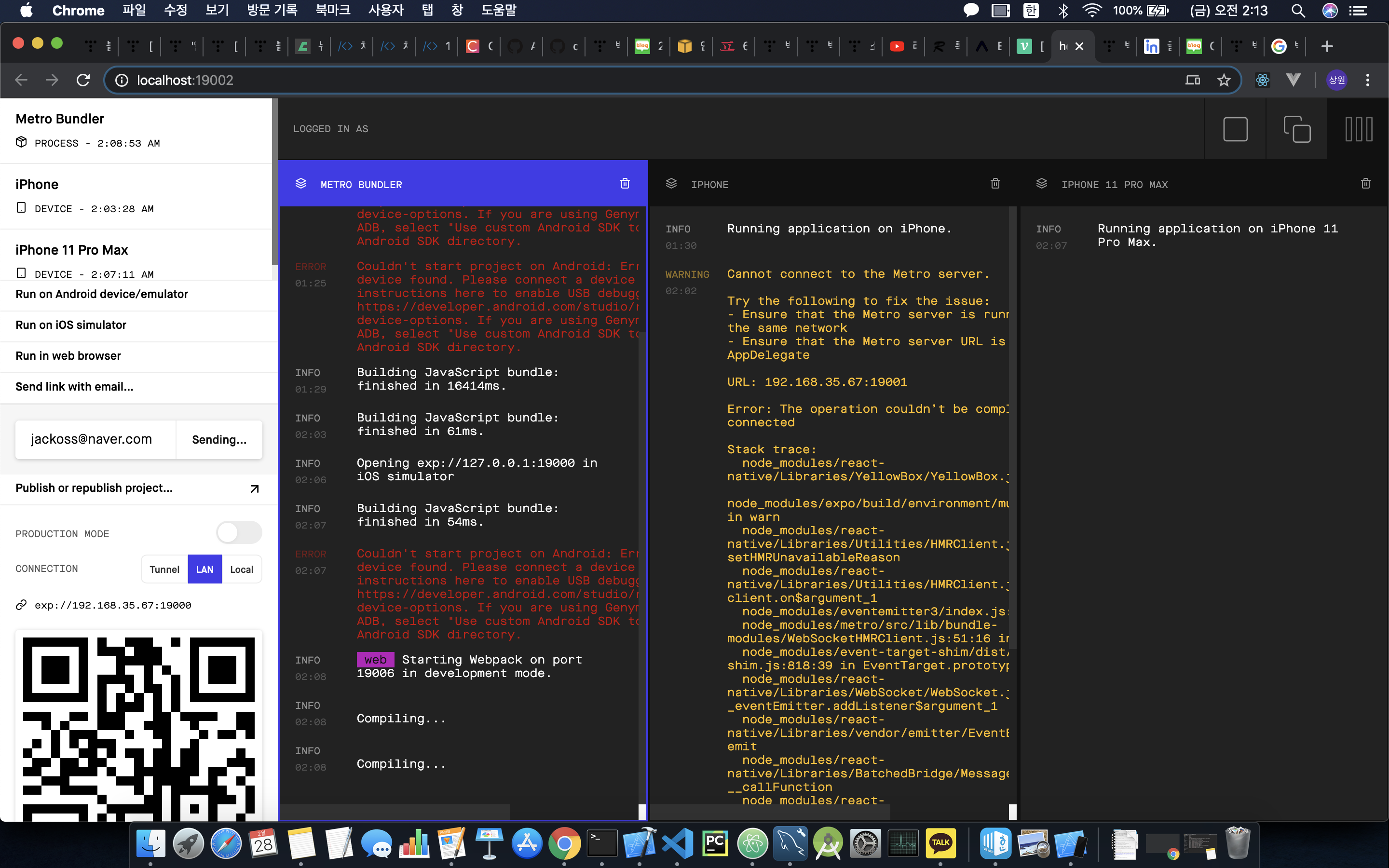 - 나의 핸드폰에서 expo client 설치 후 같은 네트워크에 연결되어 있으면 핸드폰으로 보는 것도 가능하다.