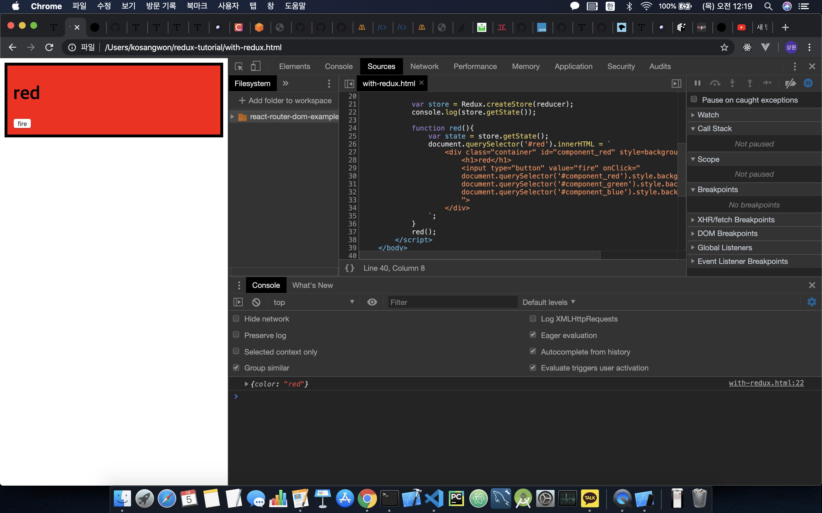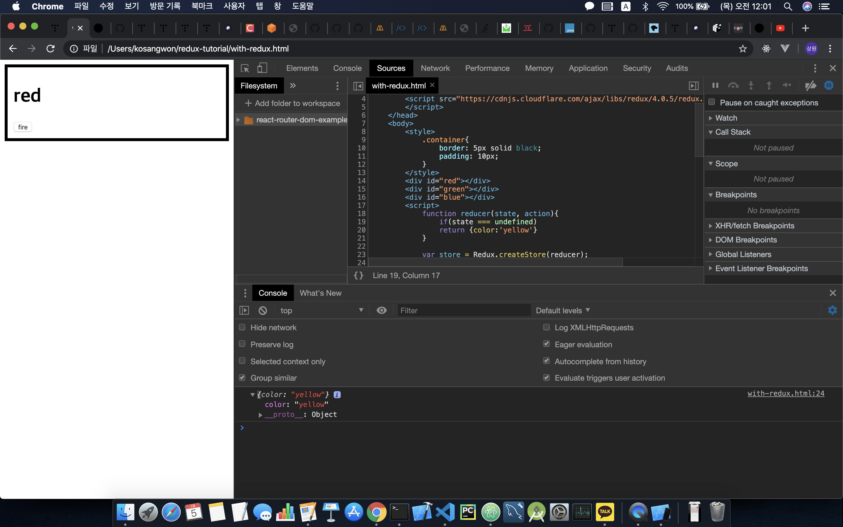 - reducer는 기존 state값과 action값을 받아야하기 때문에 그 두가지를 인자로 받는다.