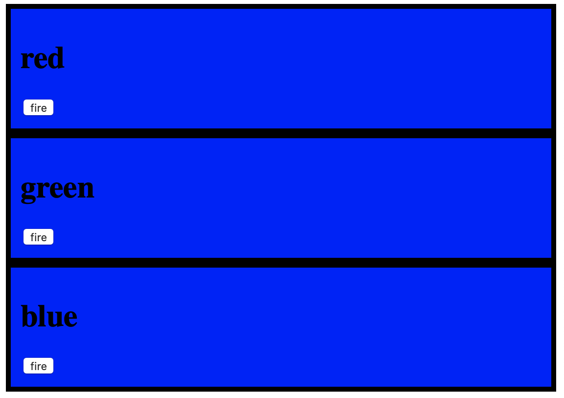 - 결과화면은 다음과 같다. 색상마다 있는 버튼을 누르면 세개의 색상이 모두 바뀐다.