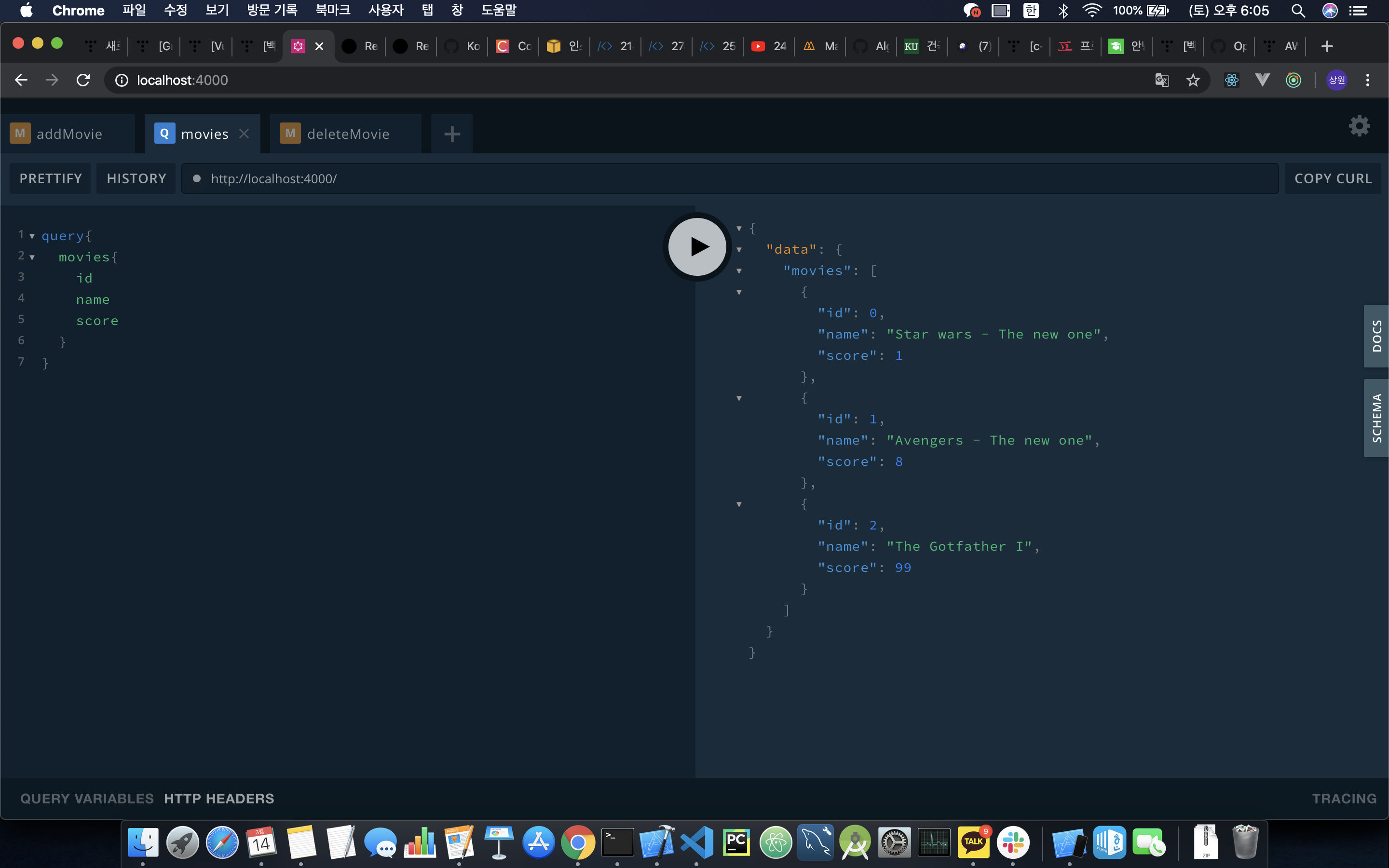 - 위 과정까지 한 것은 영화 정보를 받을 때 Query를 하였고 Database의 상태를 바꾸기 위해서 Mutation을 하였다.