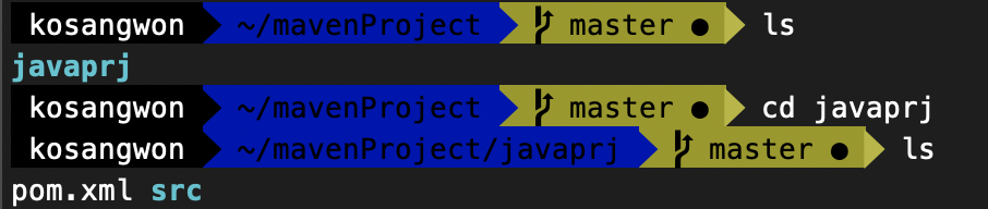 - /Users/kosangwon/mavenProject/javaprj/target 에 jar File이 생성된다.