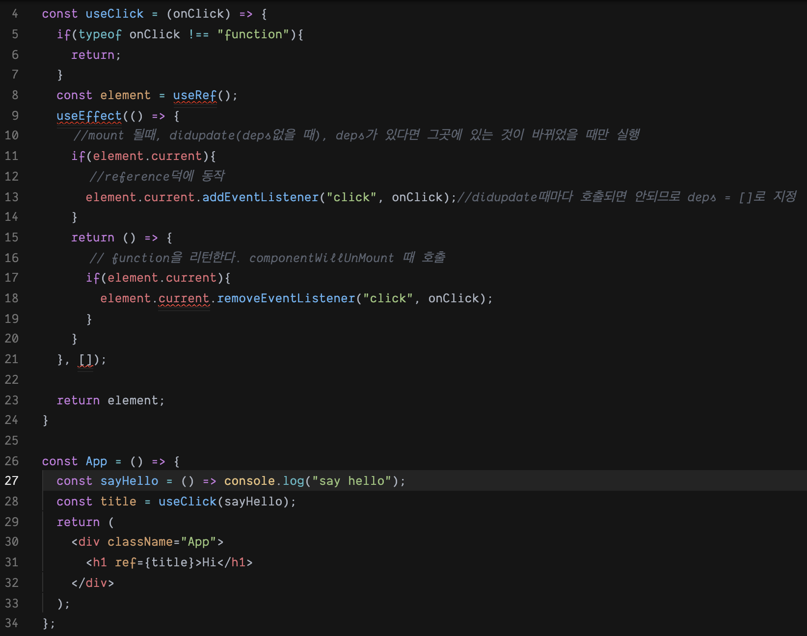 - useClick은 누군가 element를 클릭하는 시점을 발견한다.