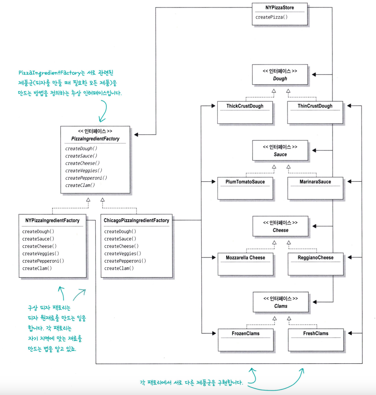 // 각 피자 클래스는 생성자로부터 팩토리를 전달받고 그 팩토리를 인스턴스 변수에 저장합니다.