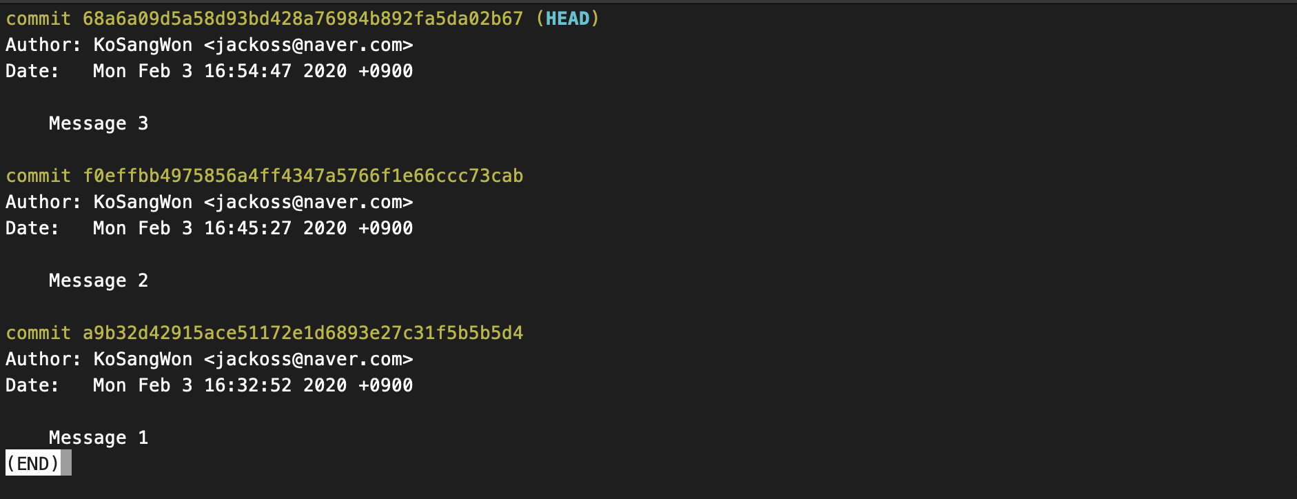 - git log 을 실행시켜보면 다음과 같이 나타난다.