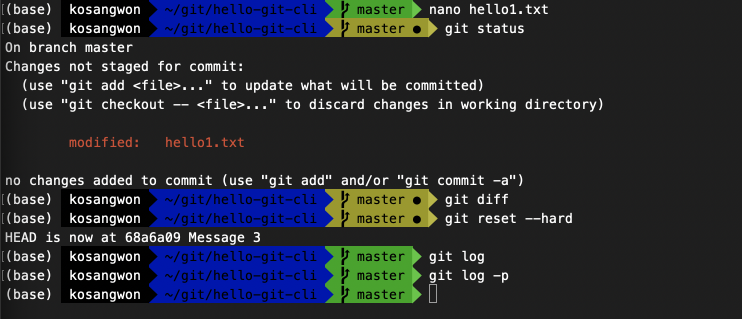 - --hard 는 가장 강력하게 지우는 것이다. 버전과 수정하던 것까지 다 지우는 것이다.