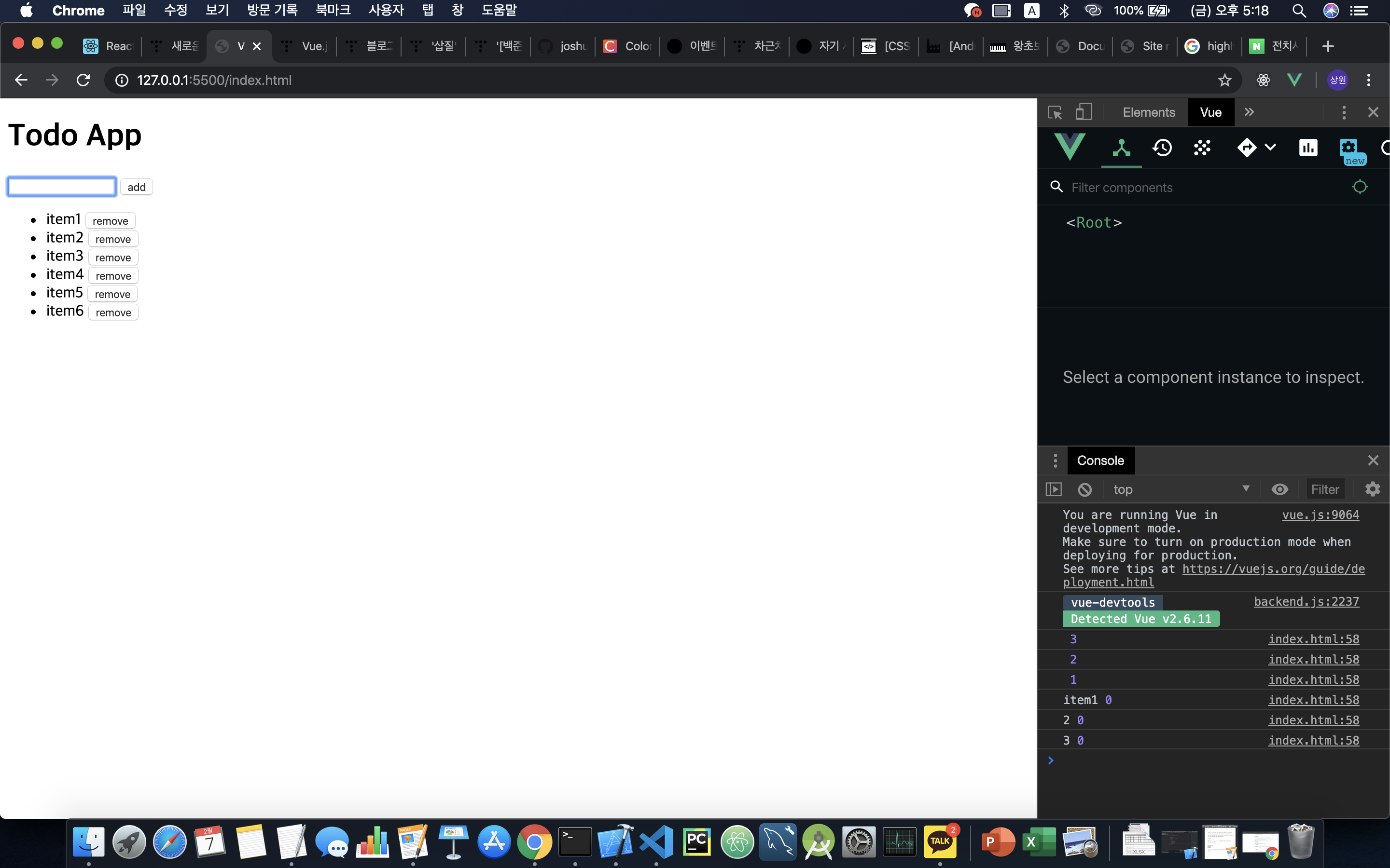 - v-on:keyup.enter="addItem" => 엔터키를 눌렀을 때로 특정해준다.