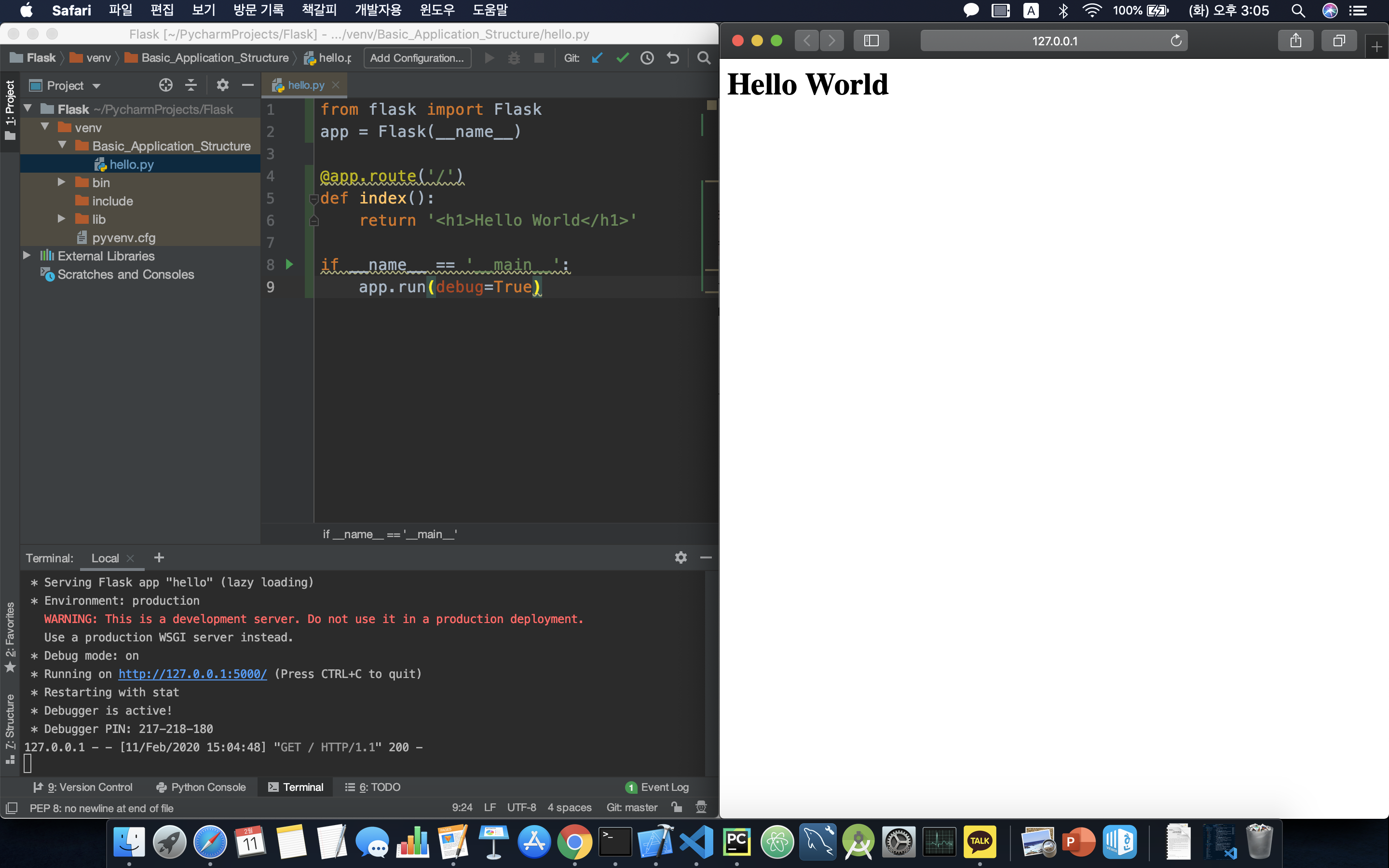 - pip install flask로 flask를 설치하고 python > import flask 하여 문제없는지 확인한다.