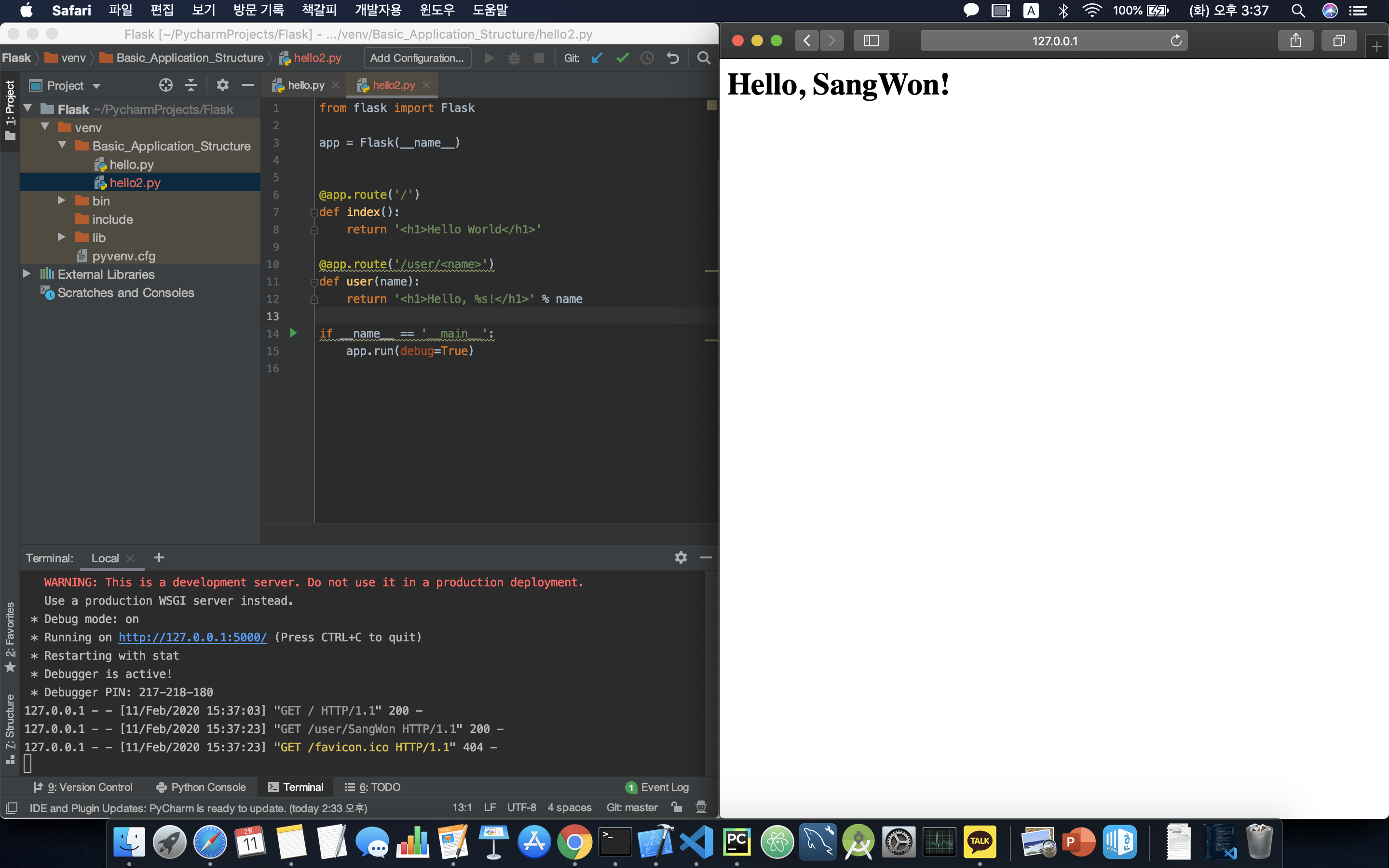 - 동적 라우트를 사용한 플라스크 애플리케이션