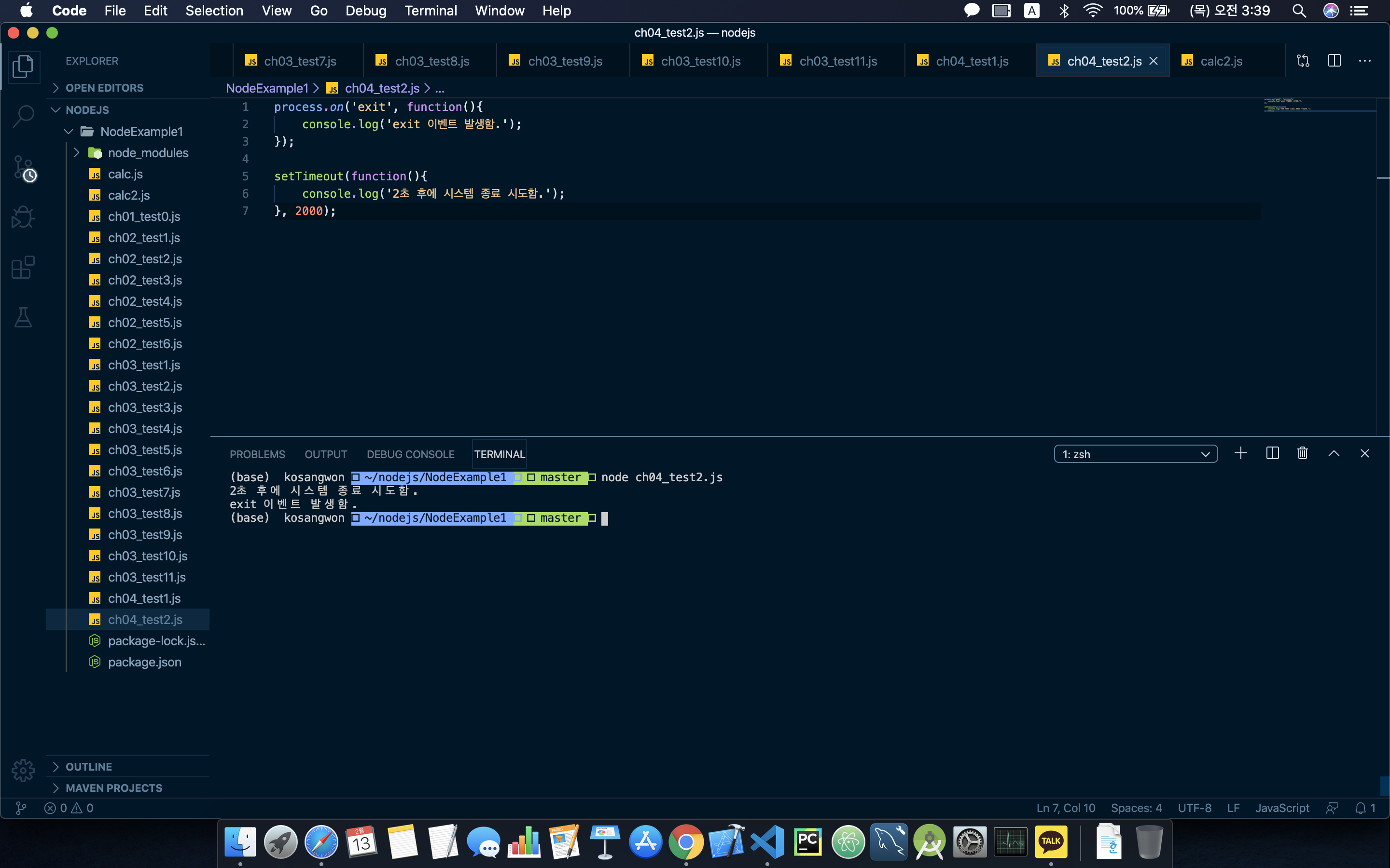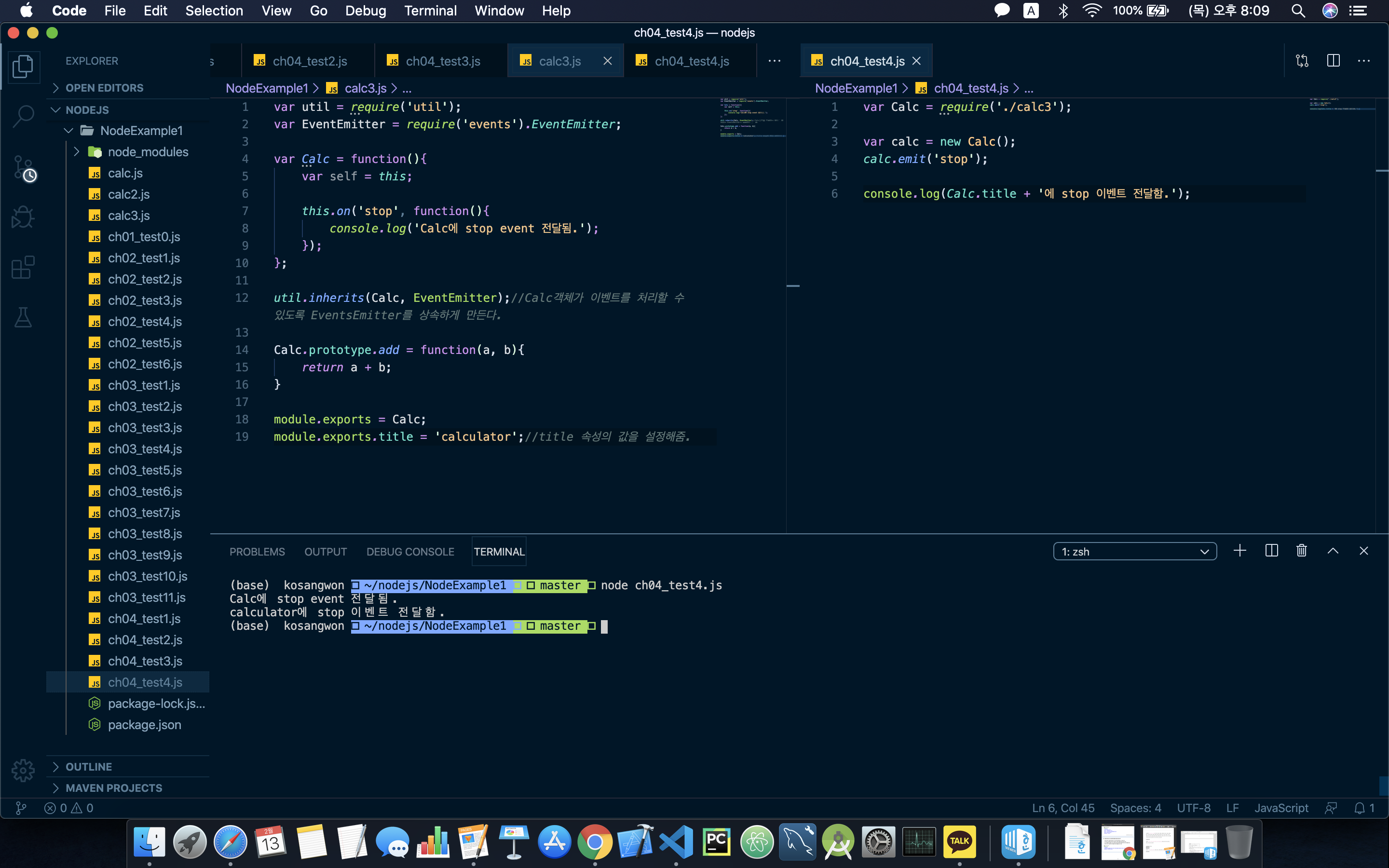 - 프로그램을 만들 때는 이벤트를 받아서 처리하는 경우가 많다. on()과 emit()을 잘 알아두자.