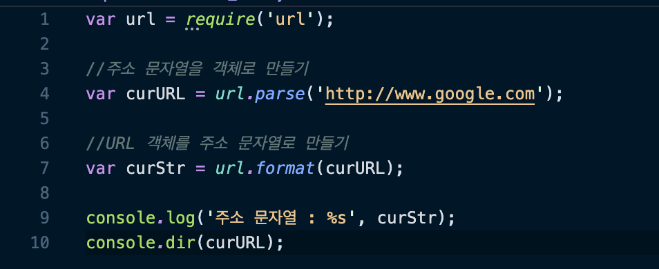 - url 모듈을 사용하기 위해 require() 메소드를 호출